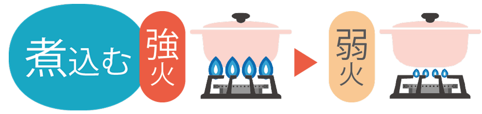 沸騰するまでは強火で。